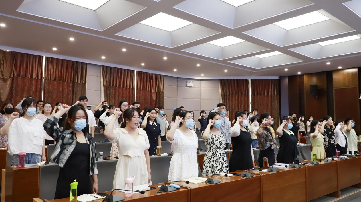 图为全体新教师作入职宣誓