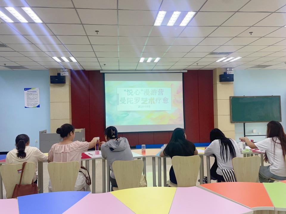 培训后的实践环节,辅导员们走进学校“一站式”学生社区服务中心,参与“绘画曼陀罗”与“身体扫描冥想”体验。通过艺术与冥想的疗愈方式,老师们完成了一次释放压力、感悟自我的心灵成长之旅。