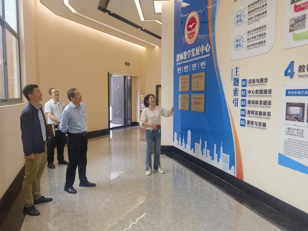 (文/管明瑞)5月28日,华中师范大学教师教育学院副院长、国家教师教学发展示范中心执行主任、博士生导师吴军其教授莅临我校教师教学发展中心指导工作。吴教授实地察看了教师教学发展中心培训场地及文化氛围,并听取了中心的宗旨与理念、职能建设、培训体系建设、教师发展体系建设等文化内涵讲解。教师教学发展中心主任郑应友副教授一行陪同考察。
