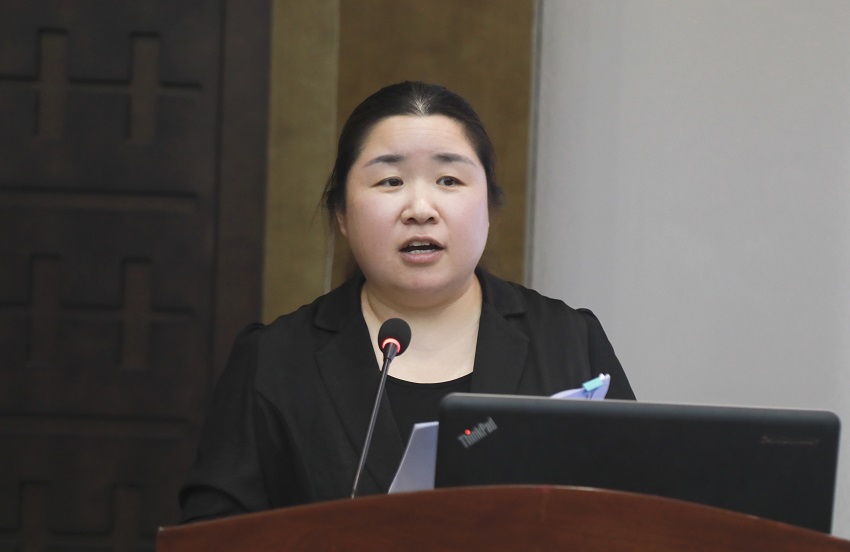 图为建筑工程学院院长李文霞教授主持报告会并作总结