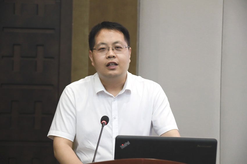图为河南工业大学土木工程学院院长、博士生导师丁永刚教授作报告