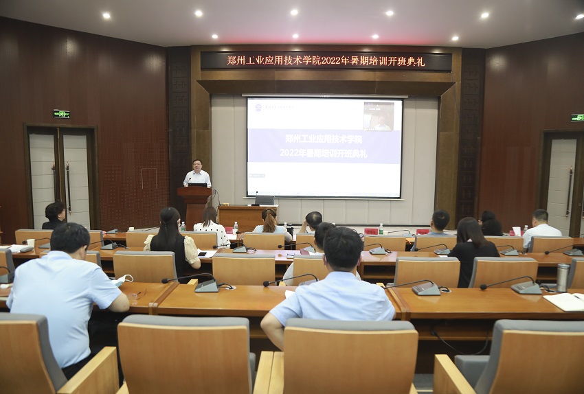 按照我校2022年暑期培训工作方案,6月13日上午,我校2022年暑期培训开班典礼如期举行,开班典礼以线上线下的形式进行。校领导及全体中层干部在建工楼天健厅线下主会场出席了开班典礼,行政、党群、教辅单位教职工在梦想厅参加了开班典礼,各二级学院通过腾讯会议在线上分会场参加了开班典礼。