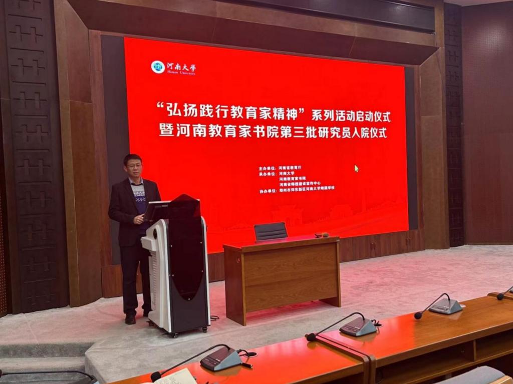 (文/高钤)3月15日,由河南省教育厅主办,河南大学、河南教育家书院、河南省师德建设宣传中心承办的“弘扬践行教育家精神”系列活动启动仪式暨河南教育家书院第三批研究员入院仪式在河南大学附属学校(郑州)举行。我校组织广大教师通过线下集中观看、自行观看等形式收看学习。教师教学发展中心贾灵充主任主持了此次学习活动。
