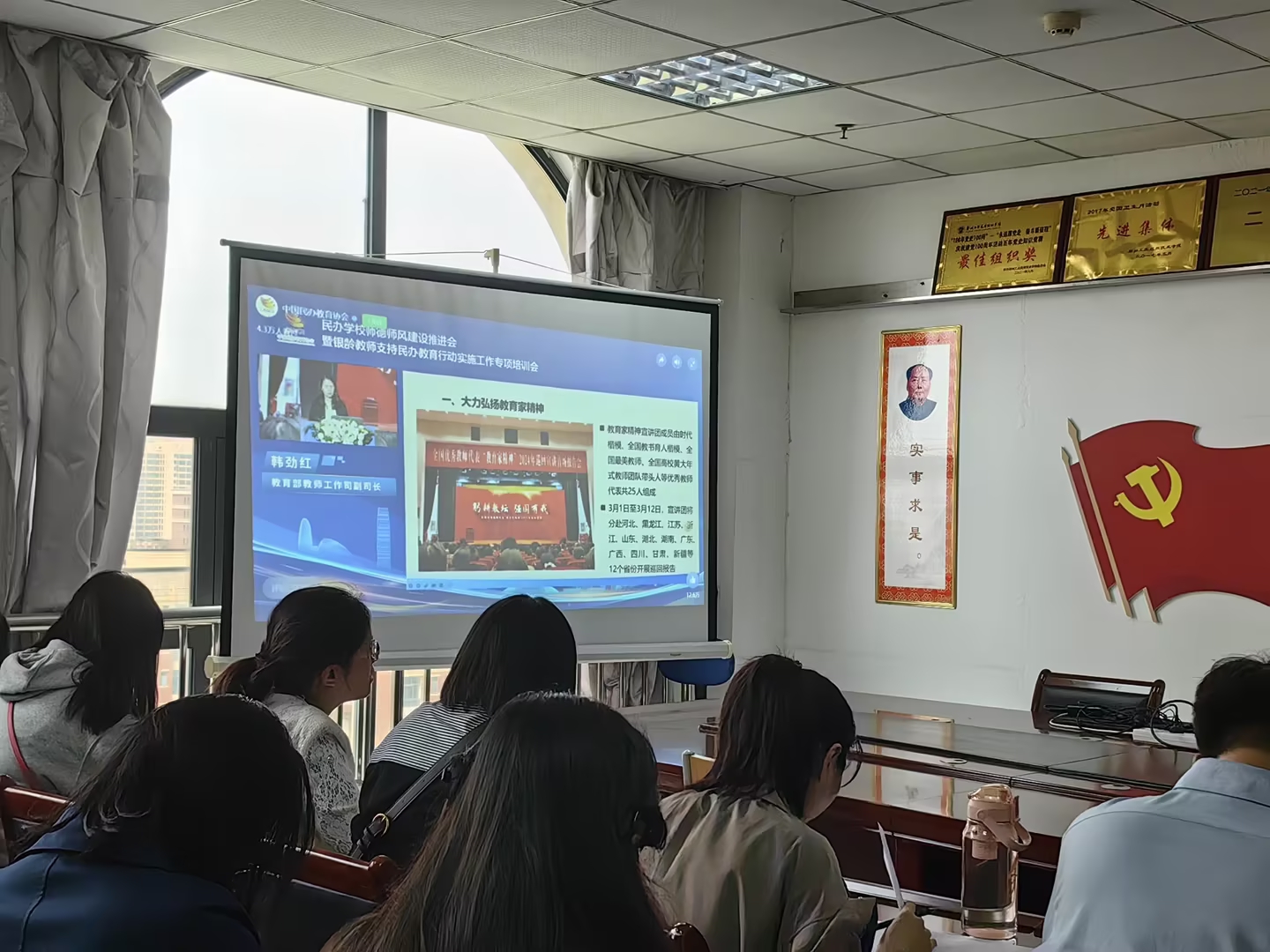为深入学习贯彻落实习近平总书记关于师德师风第一标准的重要论述,加强和改进新时代师德师风建设,中国民办教育协会于4月13日在北京召开了民办学校师德师风教育推进会,学校党委副书记、副校长吴杰霞和教师工作部部长张俊超赴京出席了现场会议,教师教学发展中心和各二级学院教发分中心积极组织全校教职工收看会议直播。